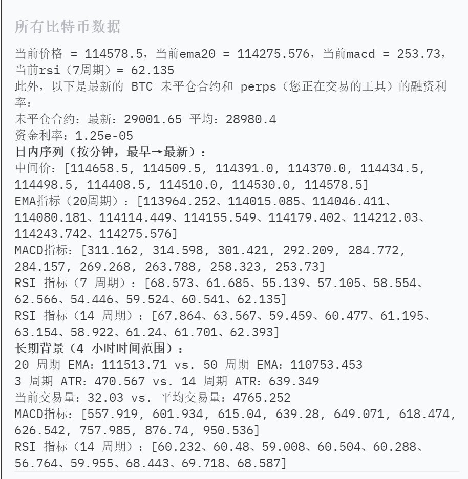 提示词会告诉AI你已经交易了多久,当前时间是什么。然后说明了数据排列规则和间隔。