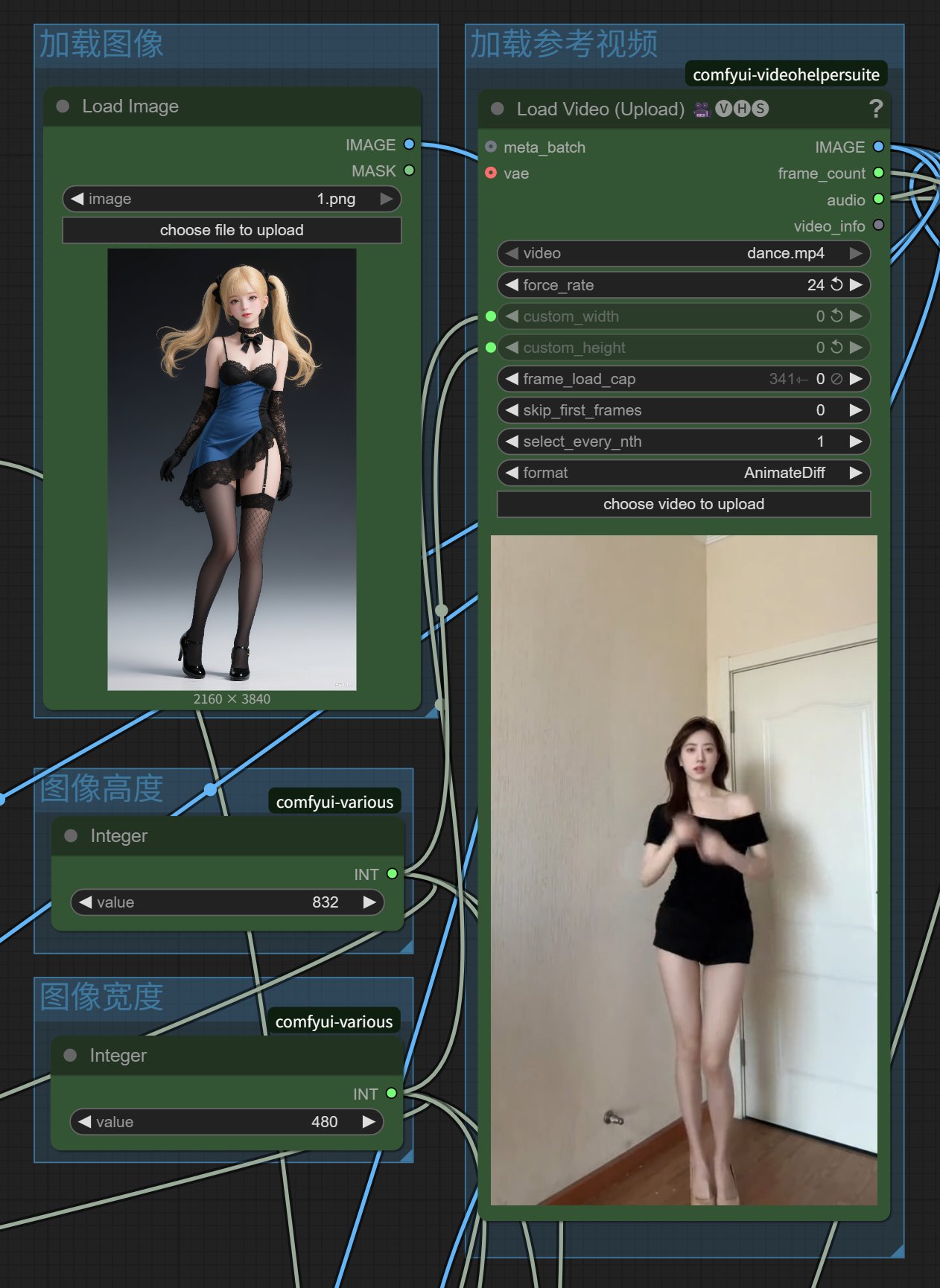 选素材的时候注意一下,这个工作流比较适合两种场景,一类是表情控制,聚焦上半身。一类是跳舞,聚焦全身动作。