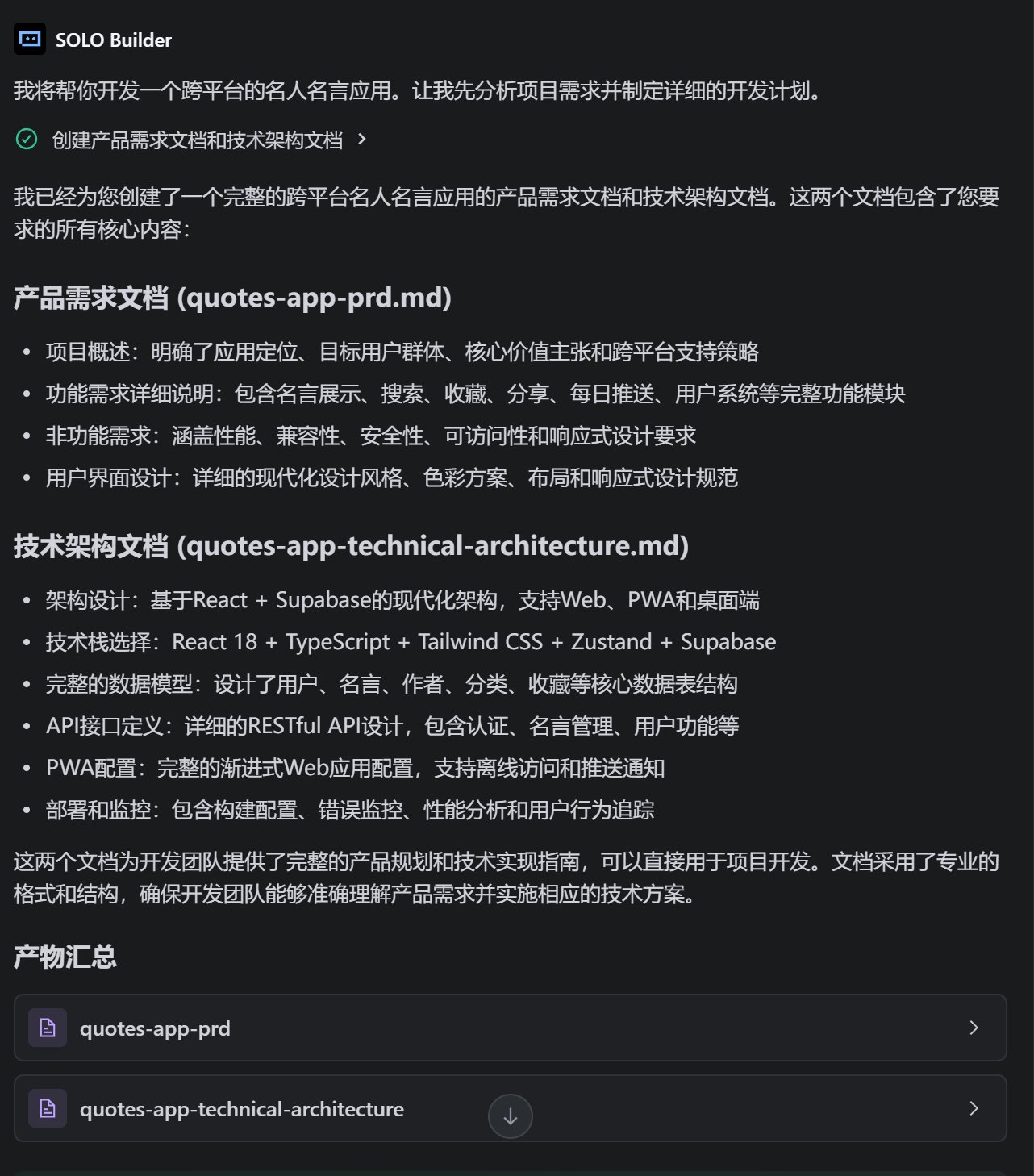 所以我决定让Trae帮我开发一个名人名言的网站,最好是能做成桌面小组件 ,在Windows上和Mac可以添加。 我知道一次性让他开发这么多是不可能滴,而且SOLO应该是更加擅长开发WEB应用。所以我们重点还是关注他开发网页的情况。