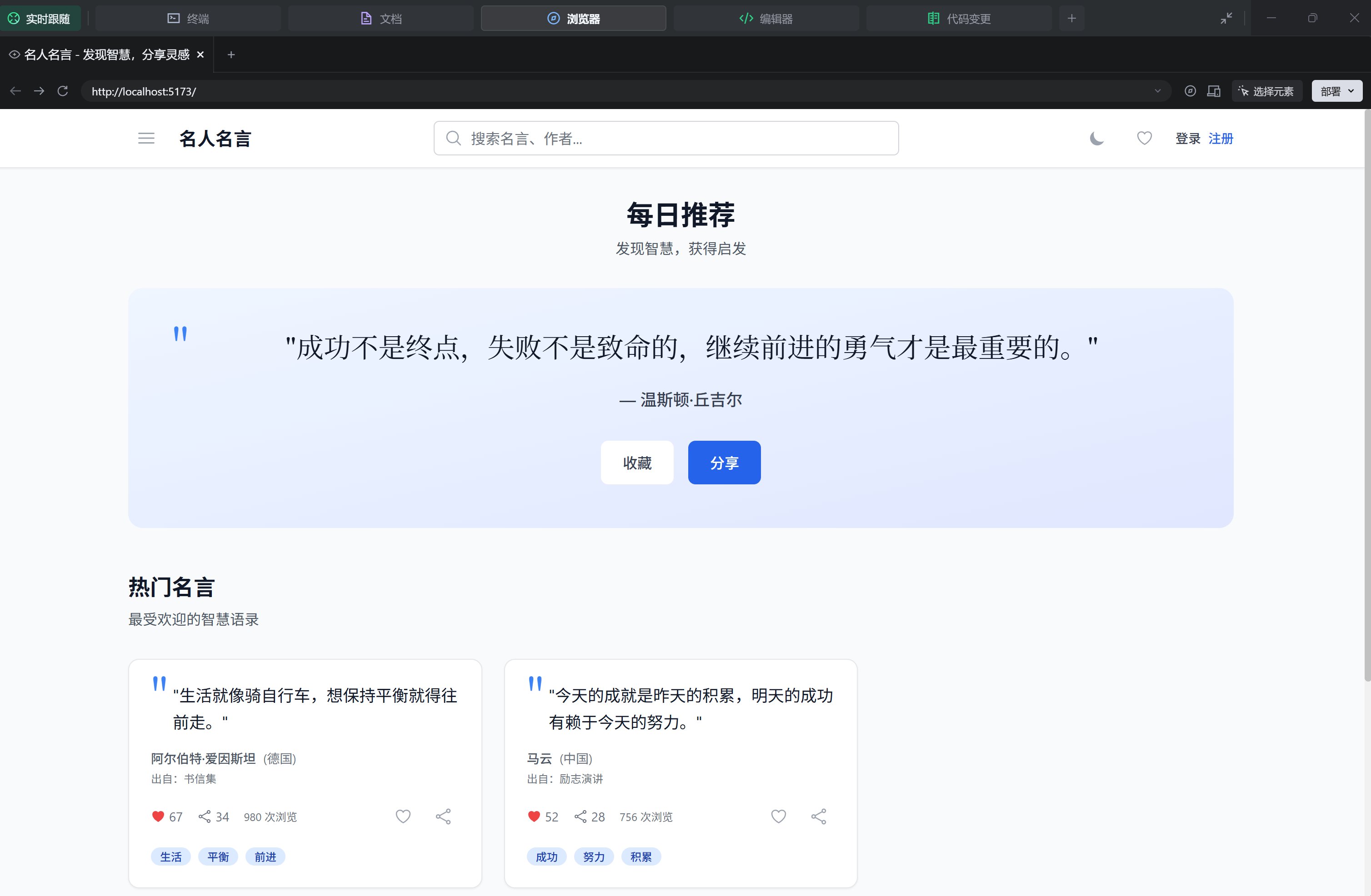 • 名言展示:按分类/作者/热度/时间等多维度展示