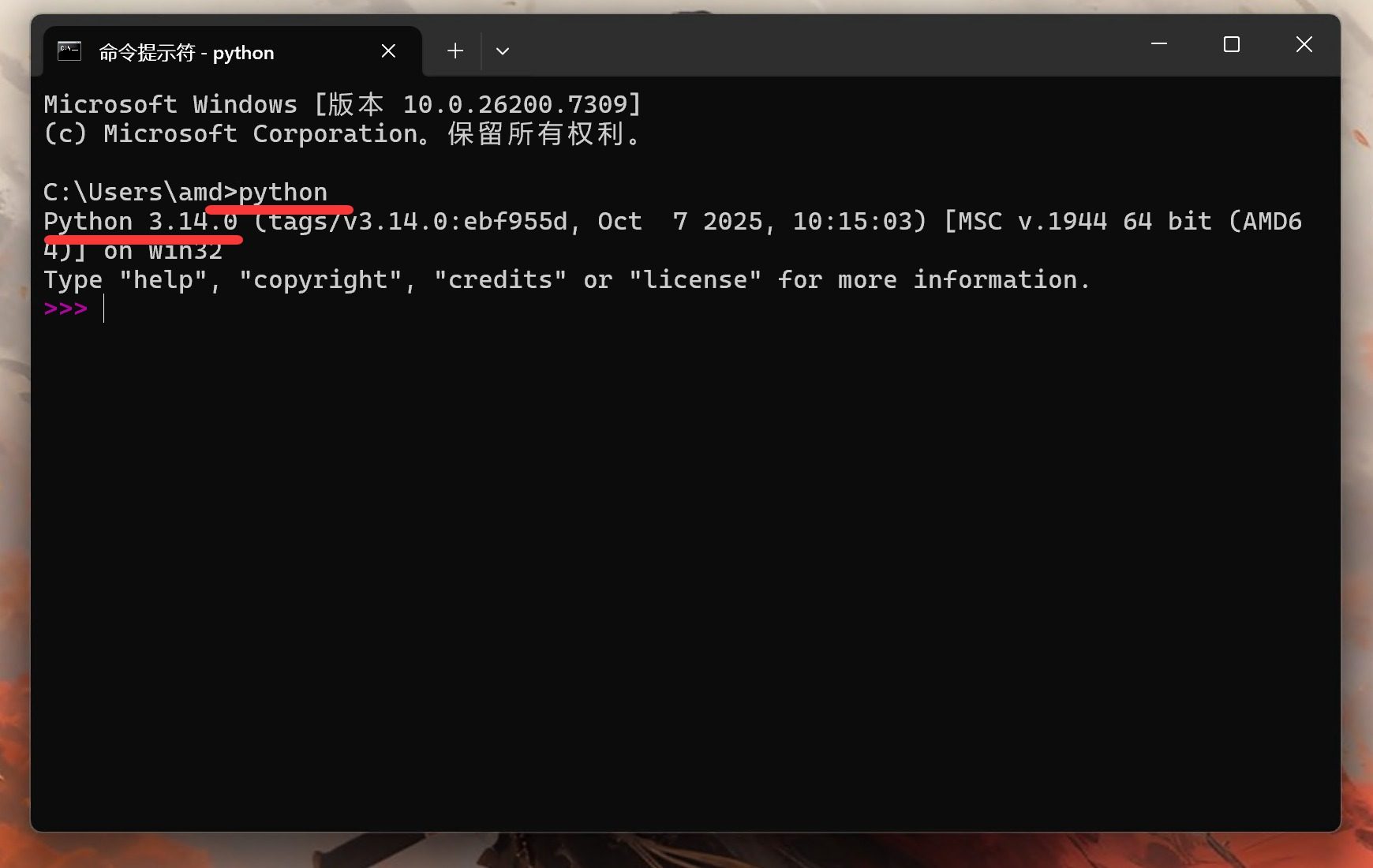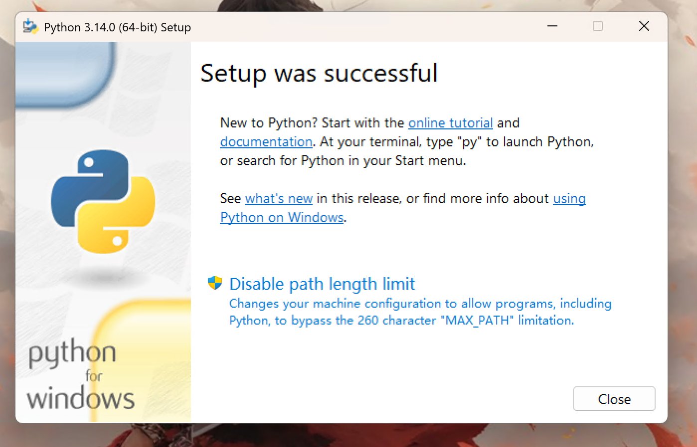 输入命令后按回车,如果输出版本号,就证明 Python 安装成功,可以进行后续步骤。