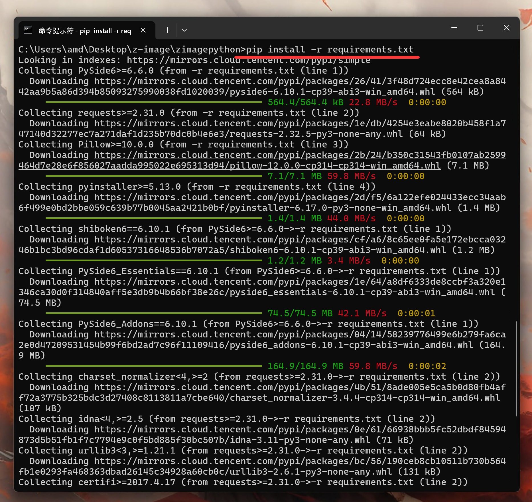 这行命令会自动读取 requirements.txt 中的信息,依次安装需要的依赖包。