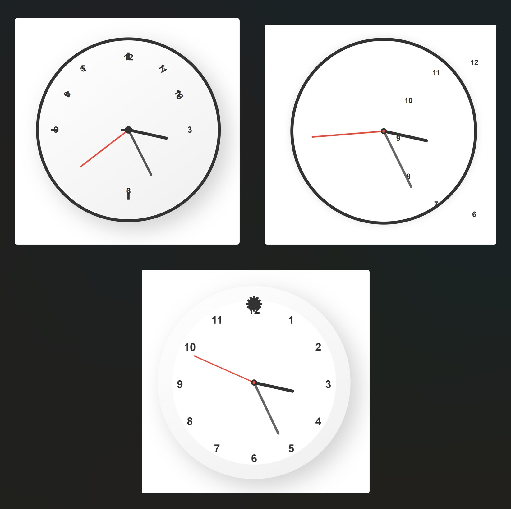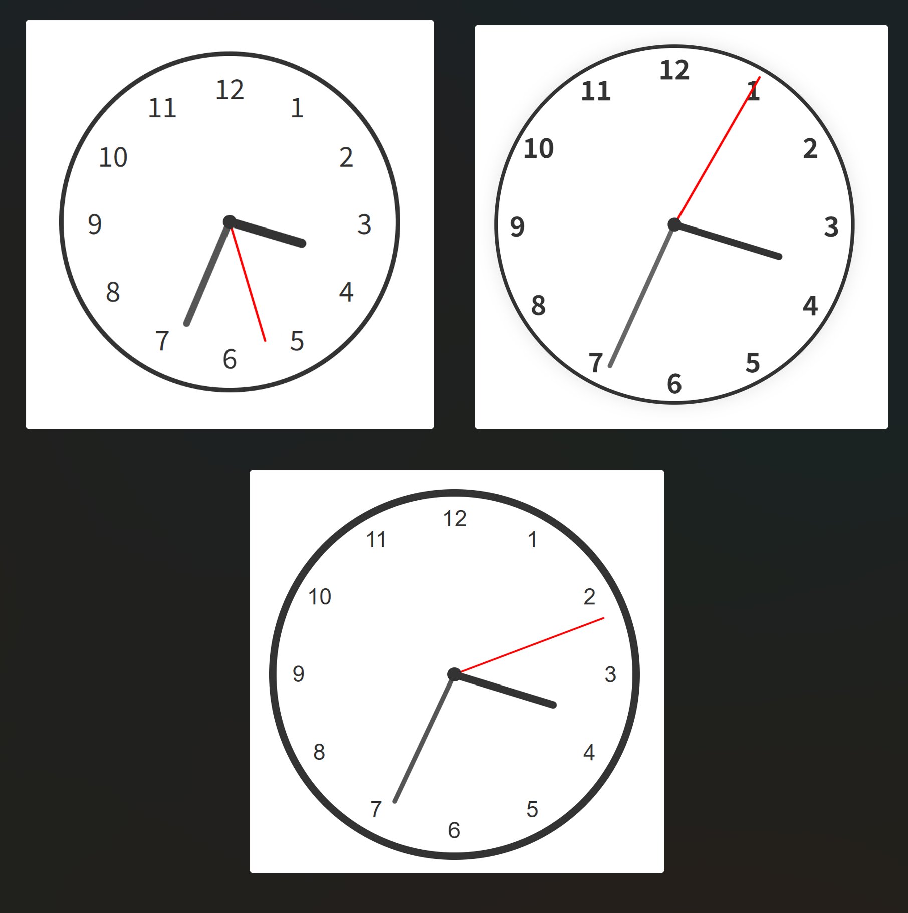 简单翻译一下,就是在网页上做一个模拟时钟。 这个题目主要是考验表盘画的好不好,刻度位置对不对,三个指针转动是否正确。 这个就是属于 WebDev 的范畴!