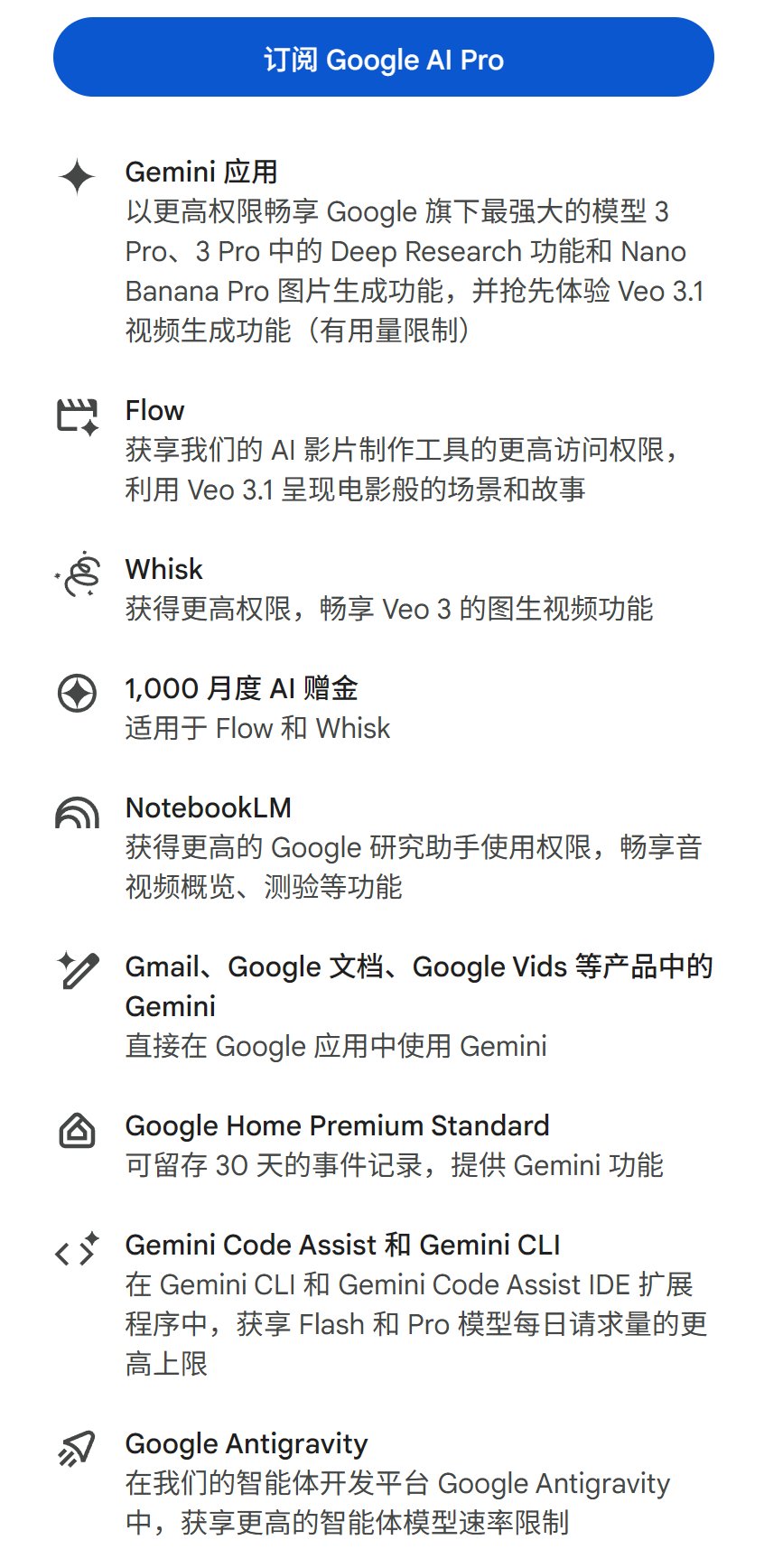 最重要的是还包含编程用 Gemini CLI 和 Antigravity。