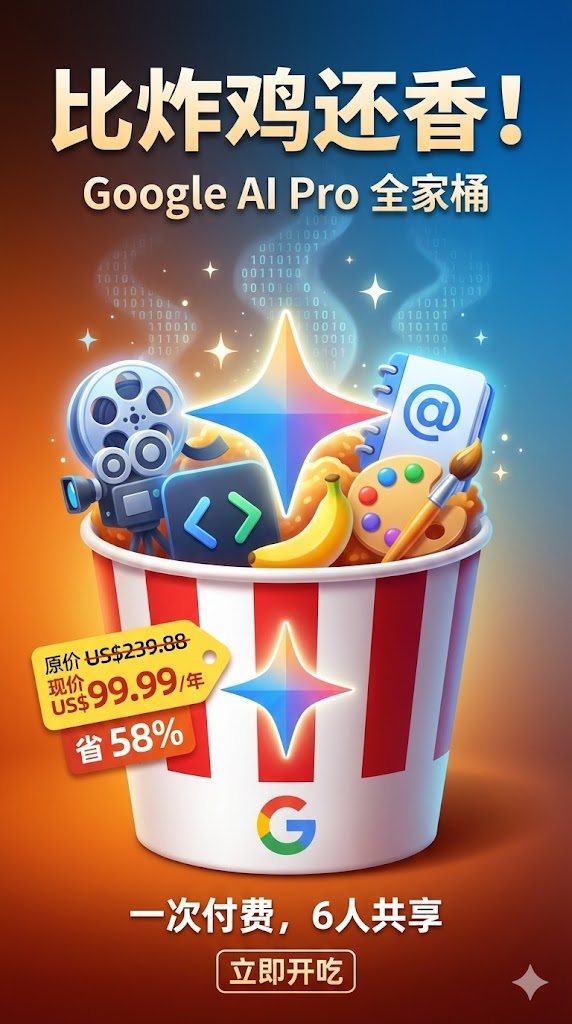 谷歌AI Pro年会员99太香了,给我整FOMO了!