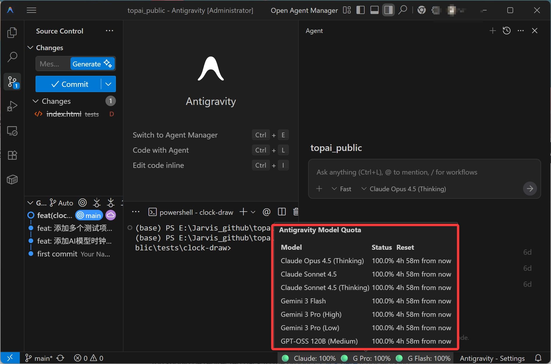如果想要精确查看配额使用情况,可以使用插件。具体可以参考这篇文章《Antigravity 配额监控,好东西啊!》
