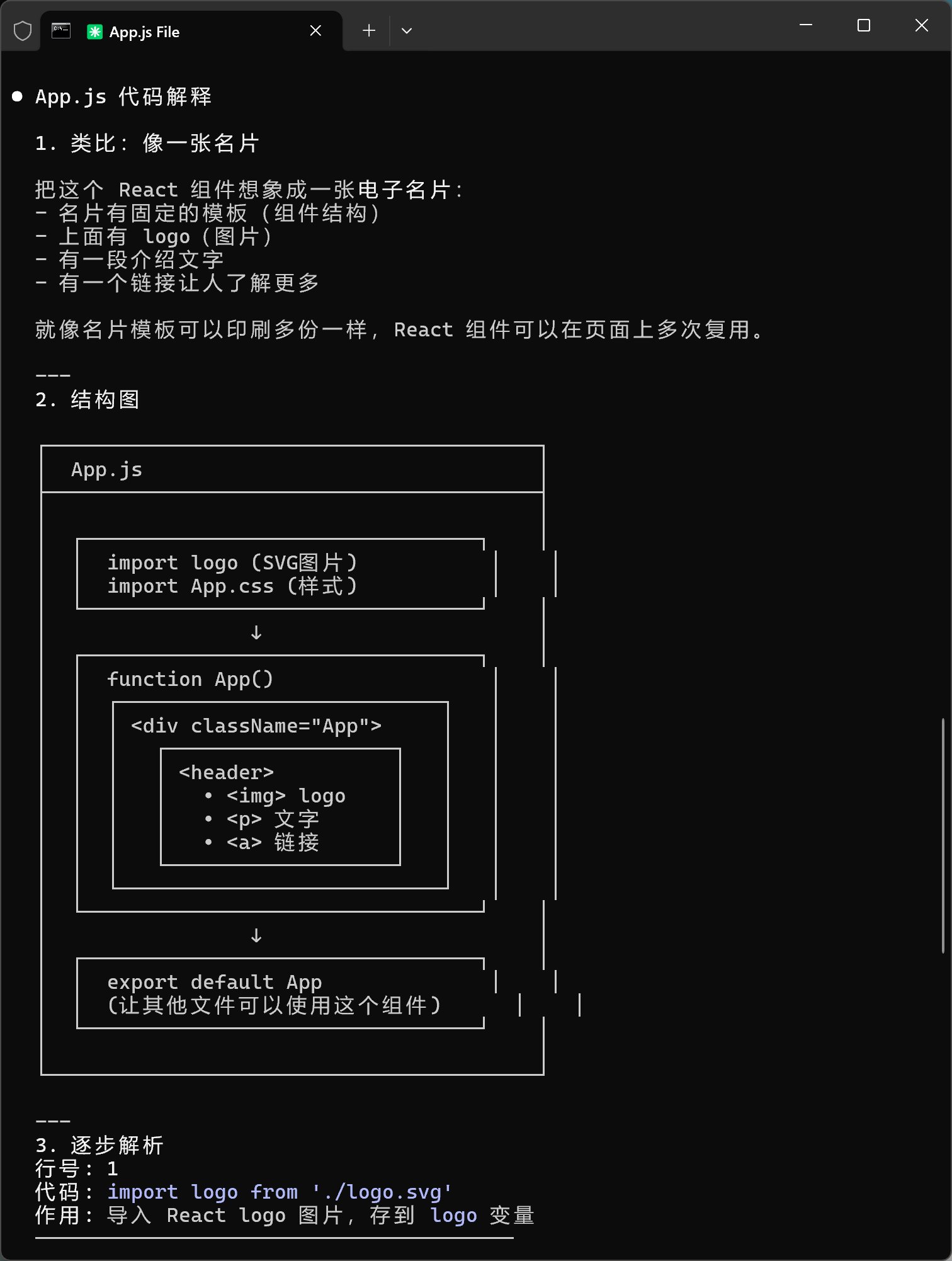 接下来我输入了 src/App.js,然后它输出了: