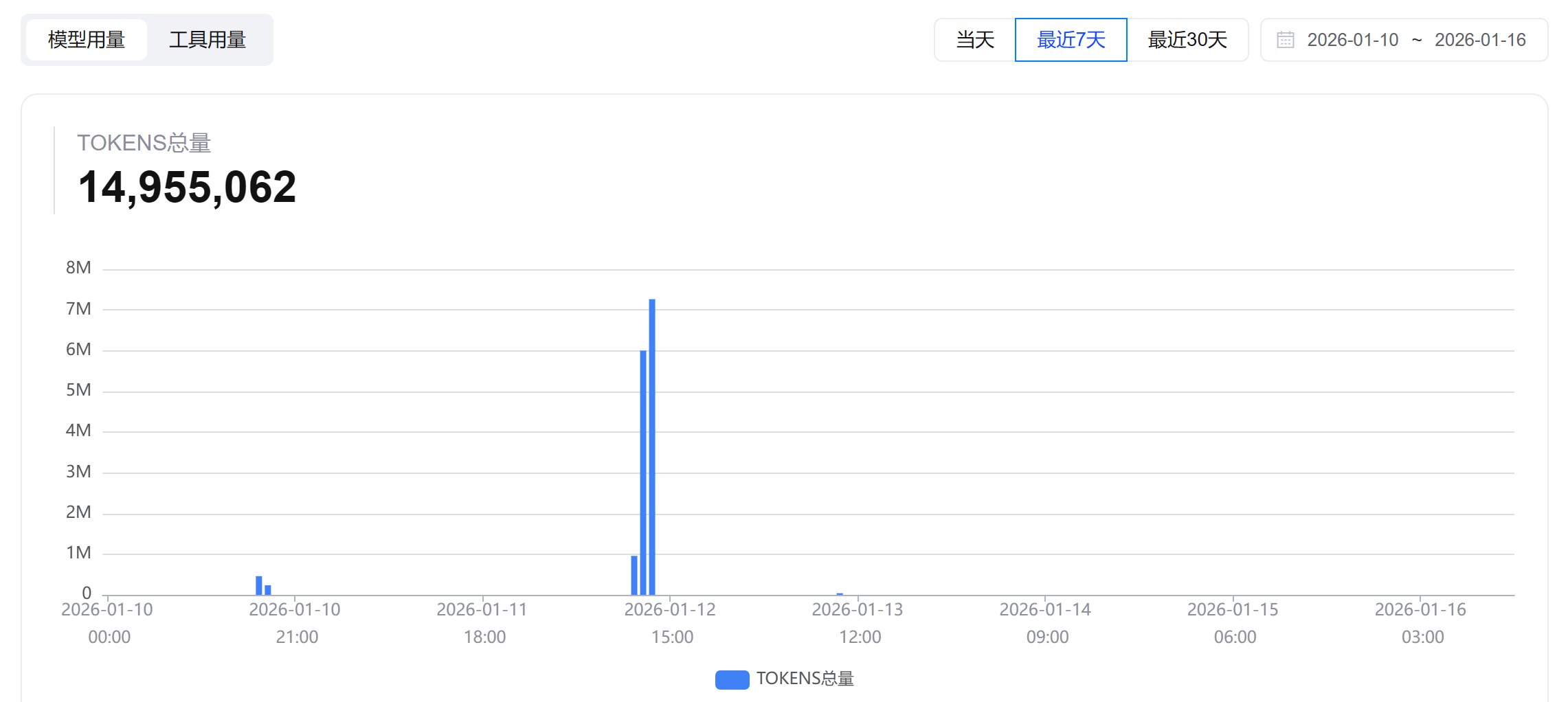 我的 GLM 4.7 目前还只用了 1400 万 token,根本用不完。