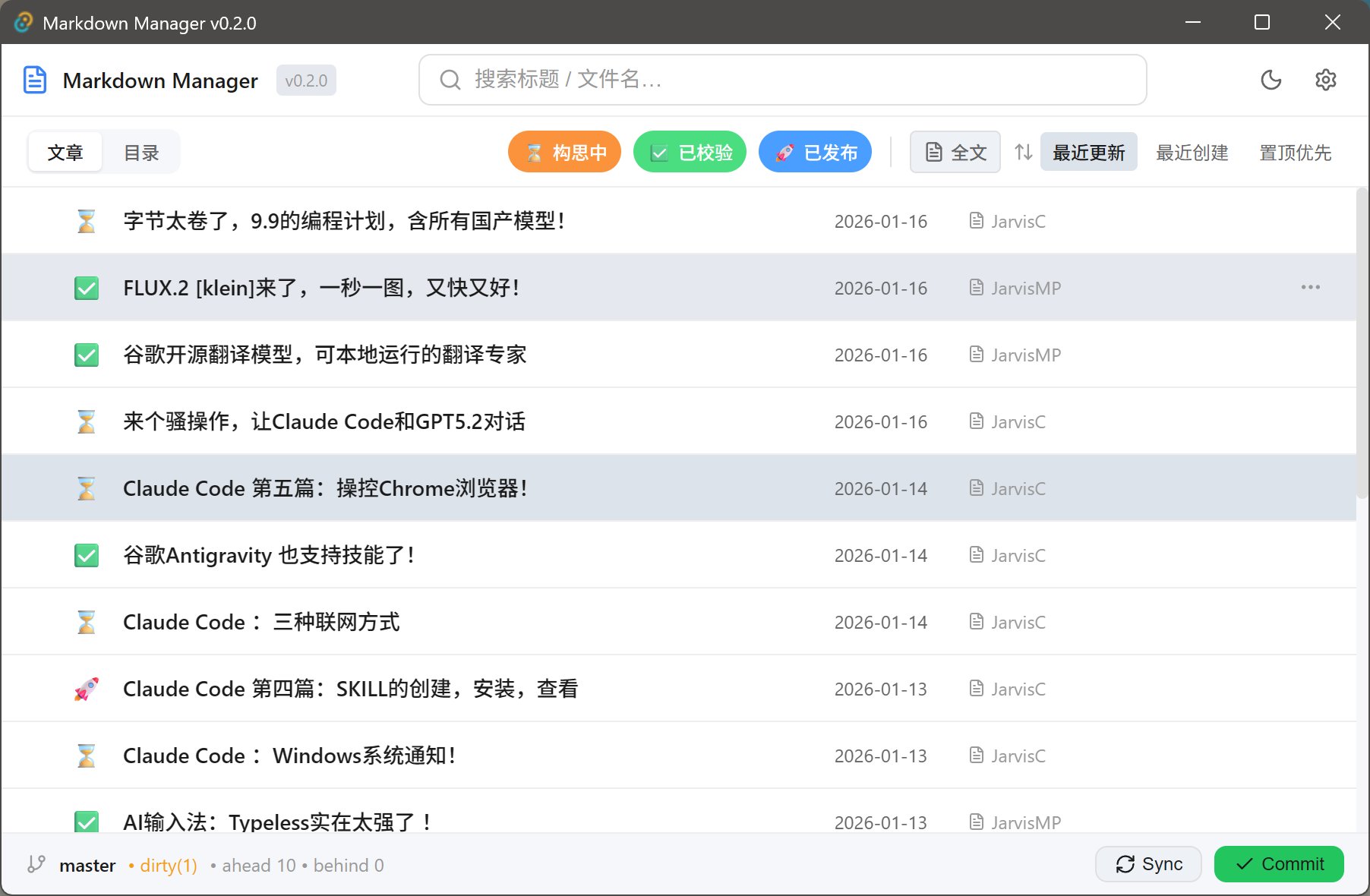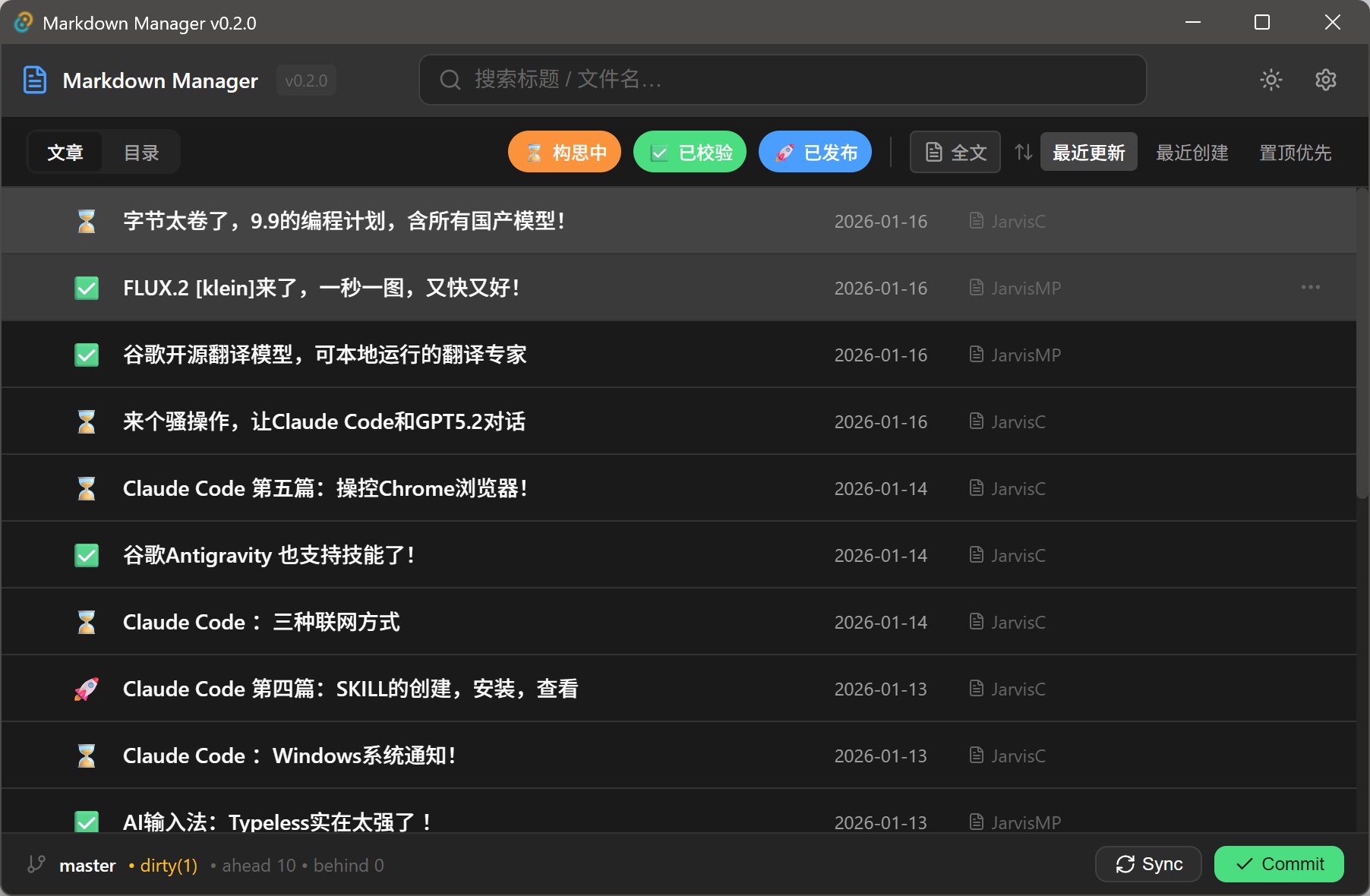 昨天刚用 Opus 给自己开发了一个 Markdown 管理器!
