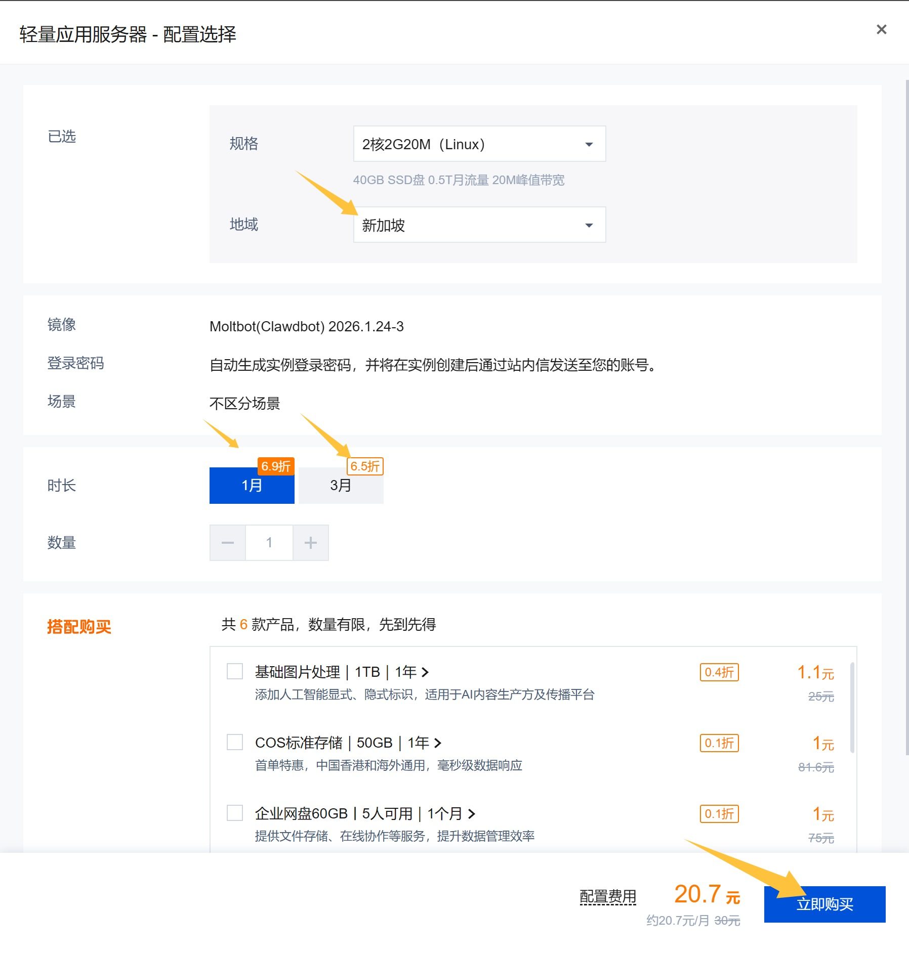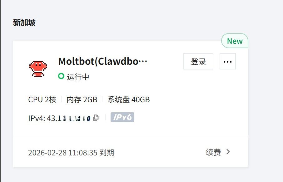 这样服务器就开通成功了,而且里面已经安装好了 Clawdbot 了。