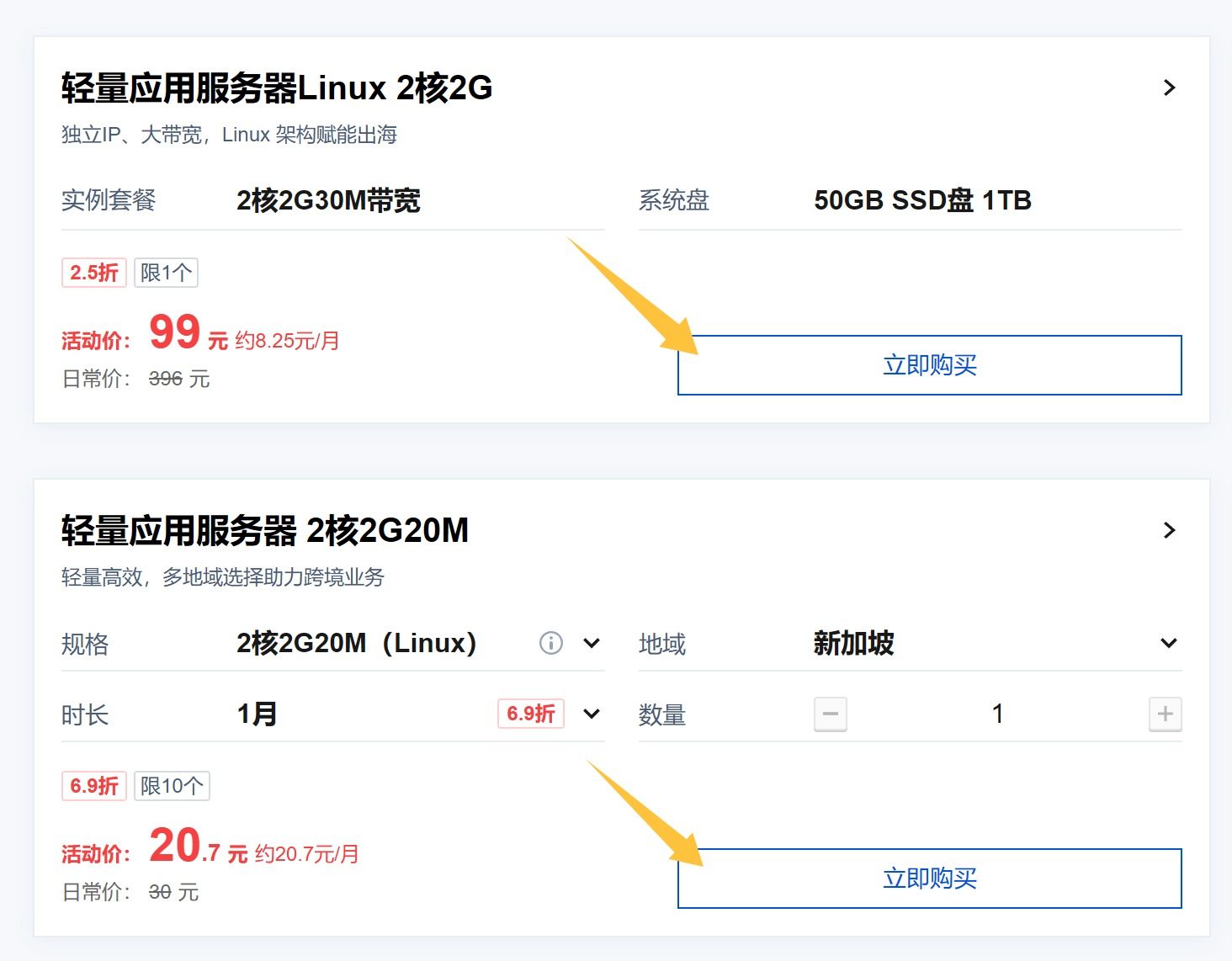 选好套餐后就可以进入购买页面了。这里没啥好说的,一般来说全部默认就好了。