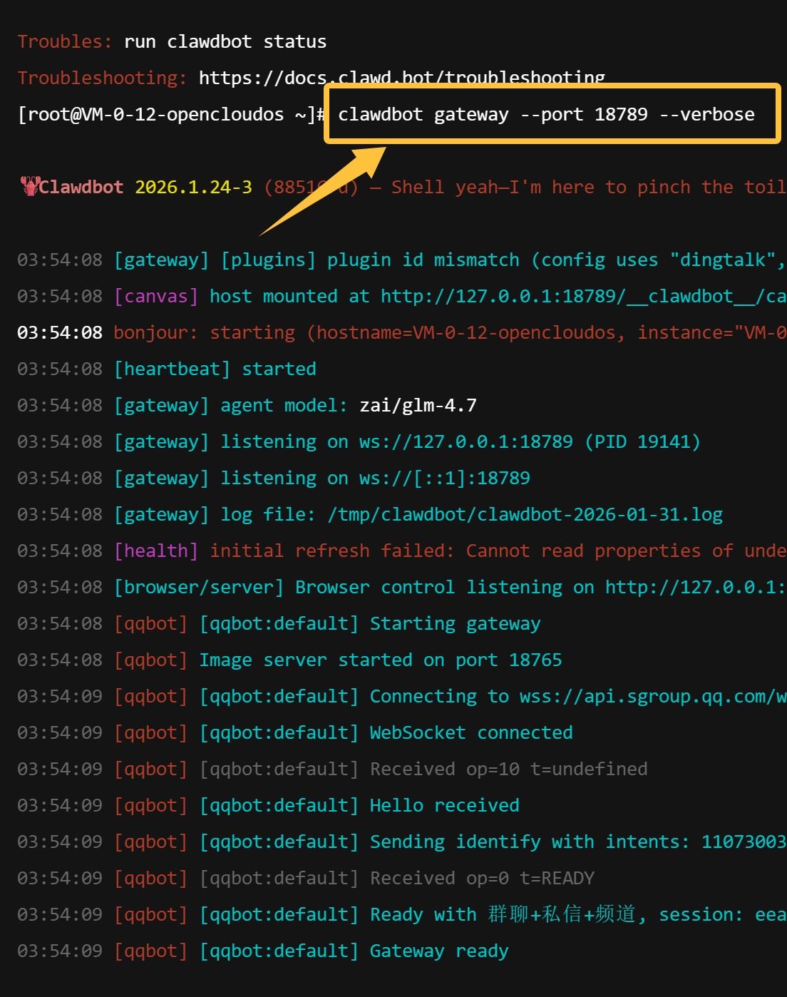 这个命令的意思,使用普通方式启动服务,端口为 18789。