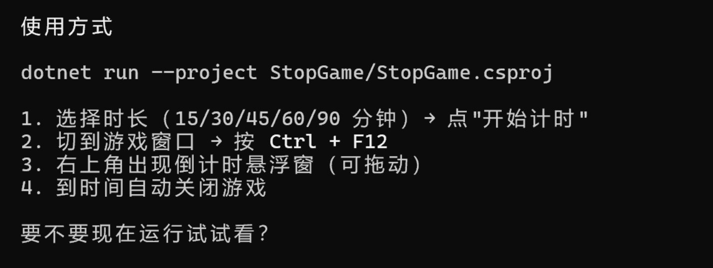 所以,我决定写一个程序,自动帮我倒计时和关闭游戏。一旦时间到了,没有任何拖延的机会,直接关闭。