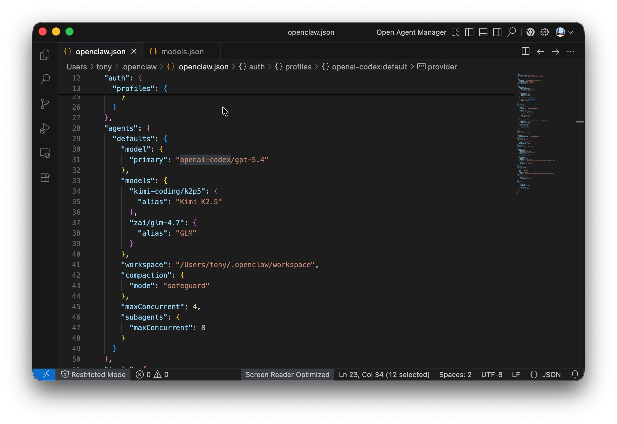 我是第一次使用 OpenAI 授权的方式配置 OpenClaw模型,我以为授权成功之后,模型就自动切换好了,其实并不是。