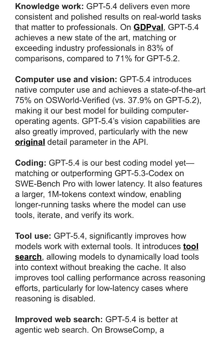 根据 OpenAI 的介绍,GPT5.4 的特点有: