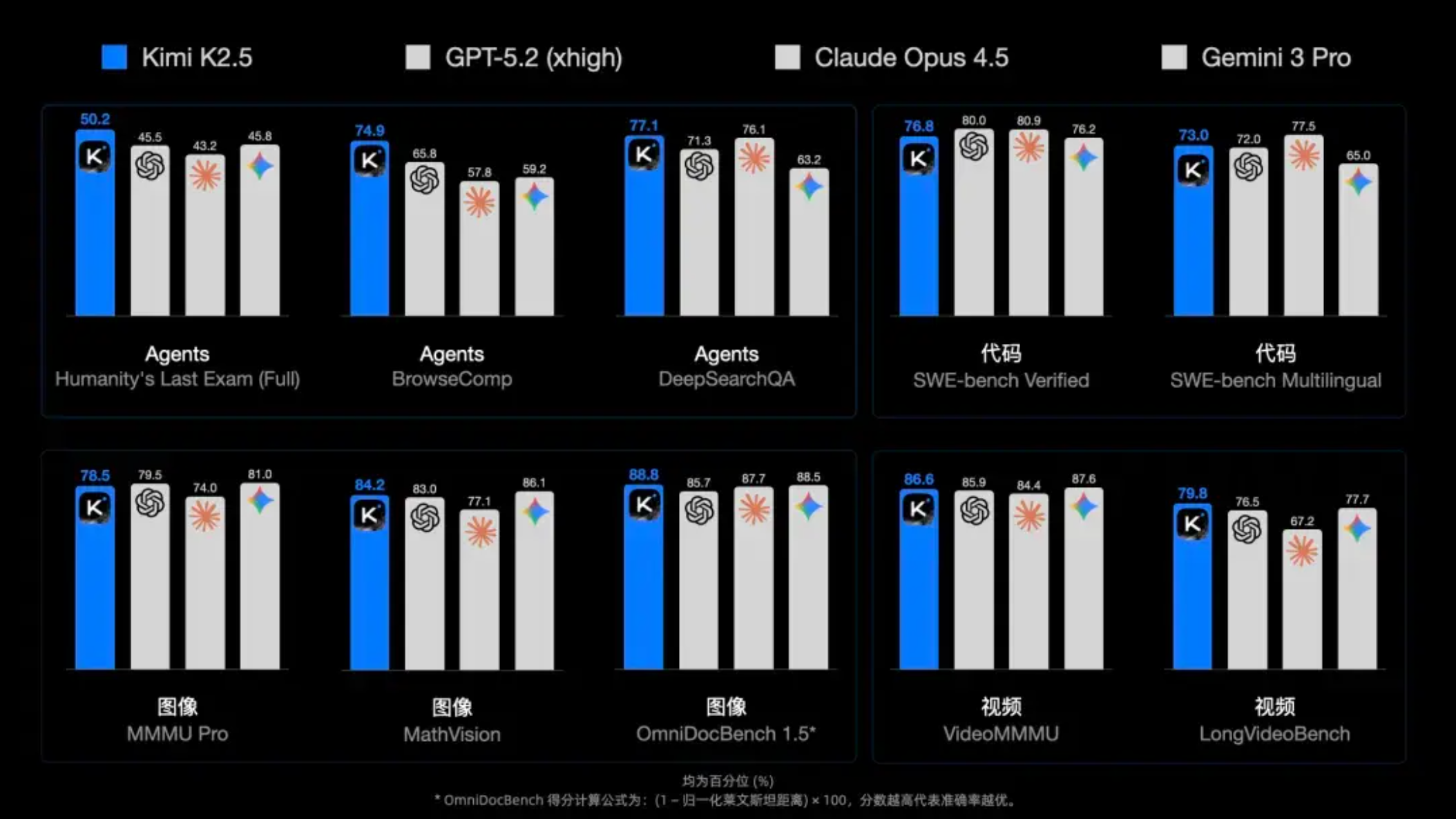 Kimi K2.5 是 Kimi 迄今最智能的模型,在 Agent、代码、视觉理解及一系列通用智能任务上取得开源 SOTA 表现。同时 Kimi K2.5 也是 Kimi 迄今最全能的模型,原生的多模态架构设计,同时支持视觉与文本输入、思考与非思考模式、对话与 Agent 任务。