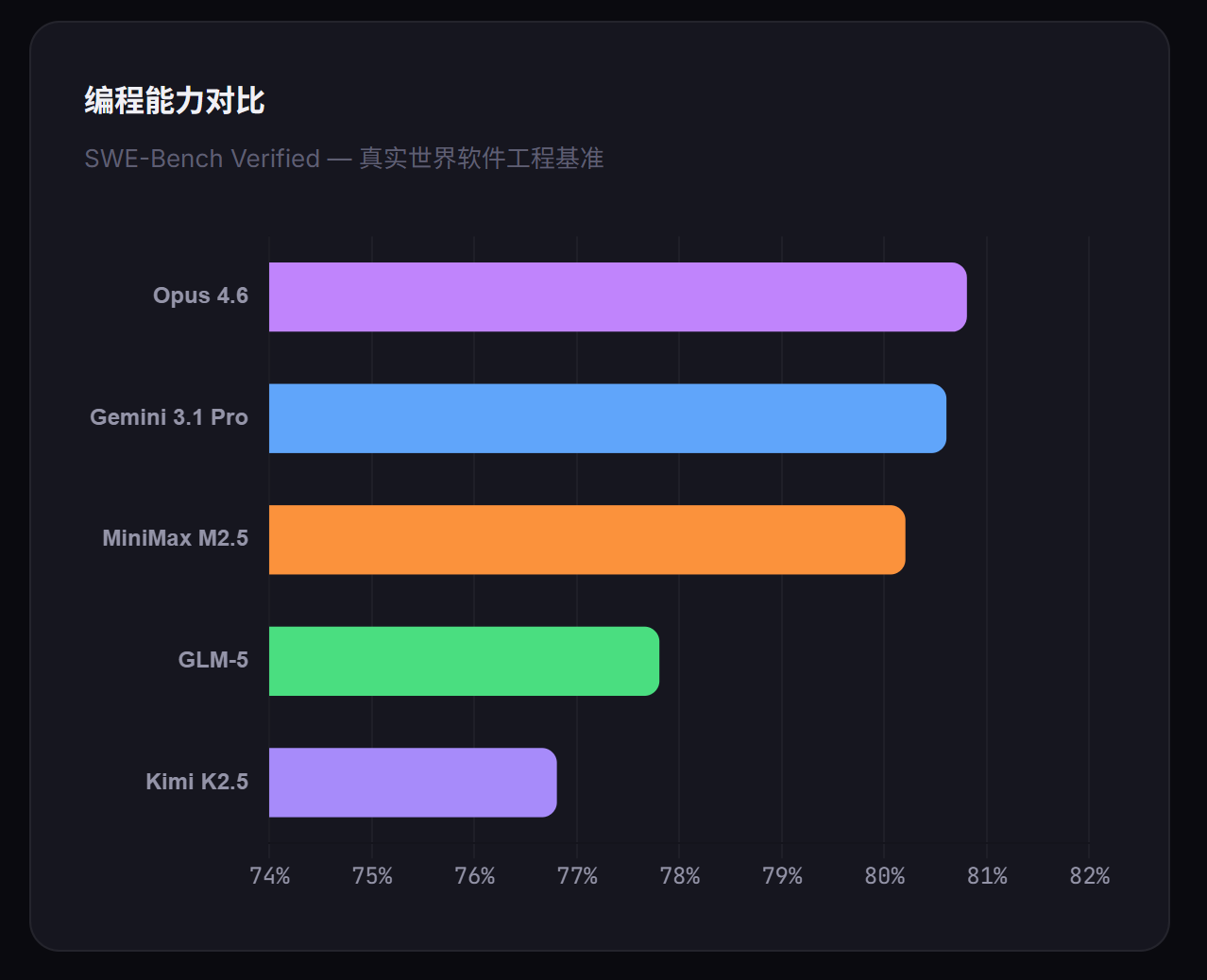 这是难得的大家都提供了的基准数据,这个基准叫 SWE-Bench Verified,专门用来测试编程能力的。