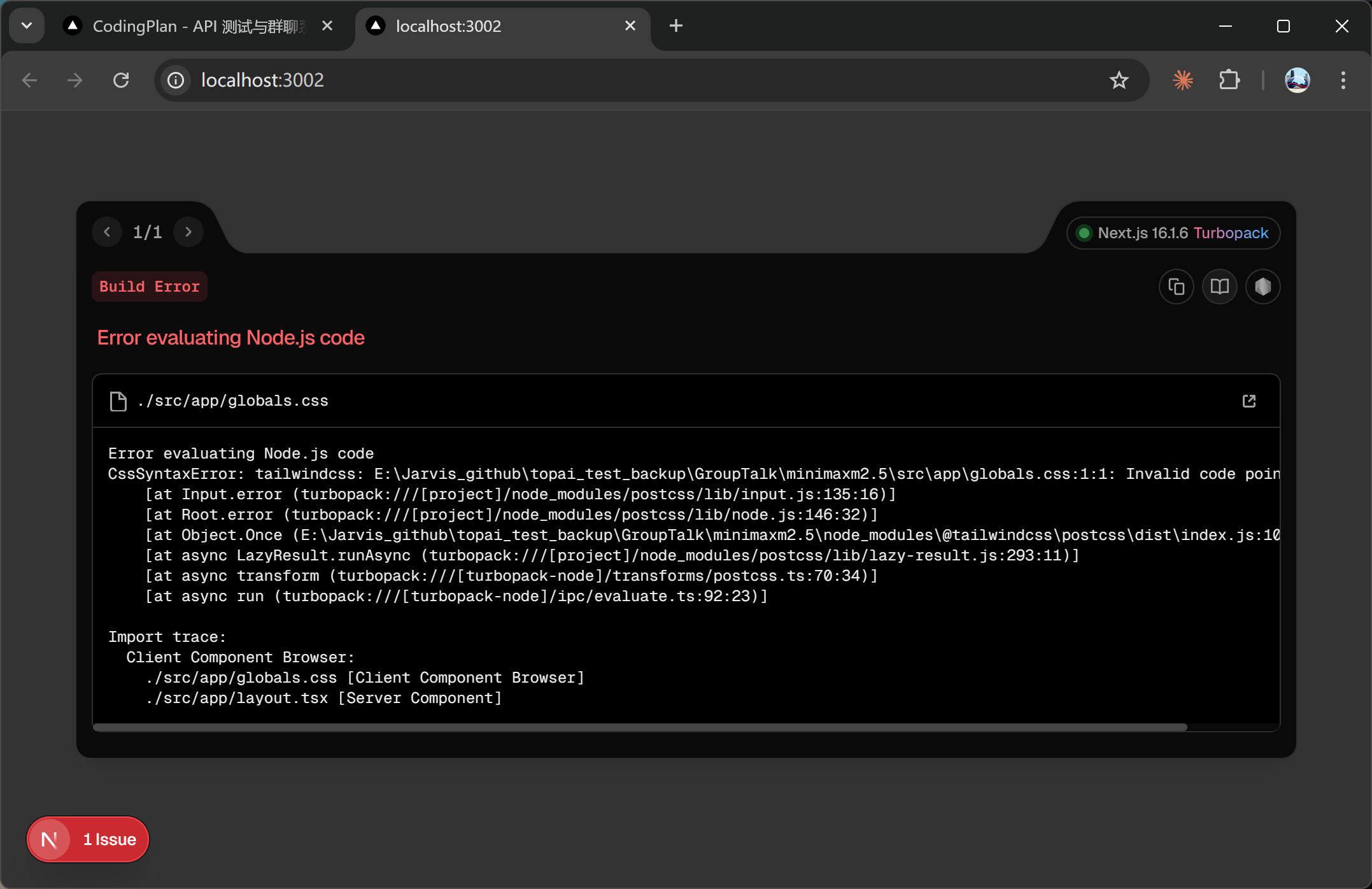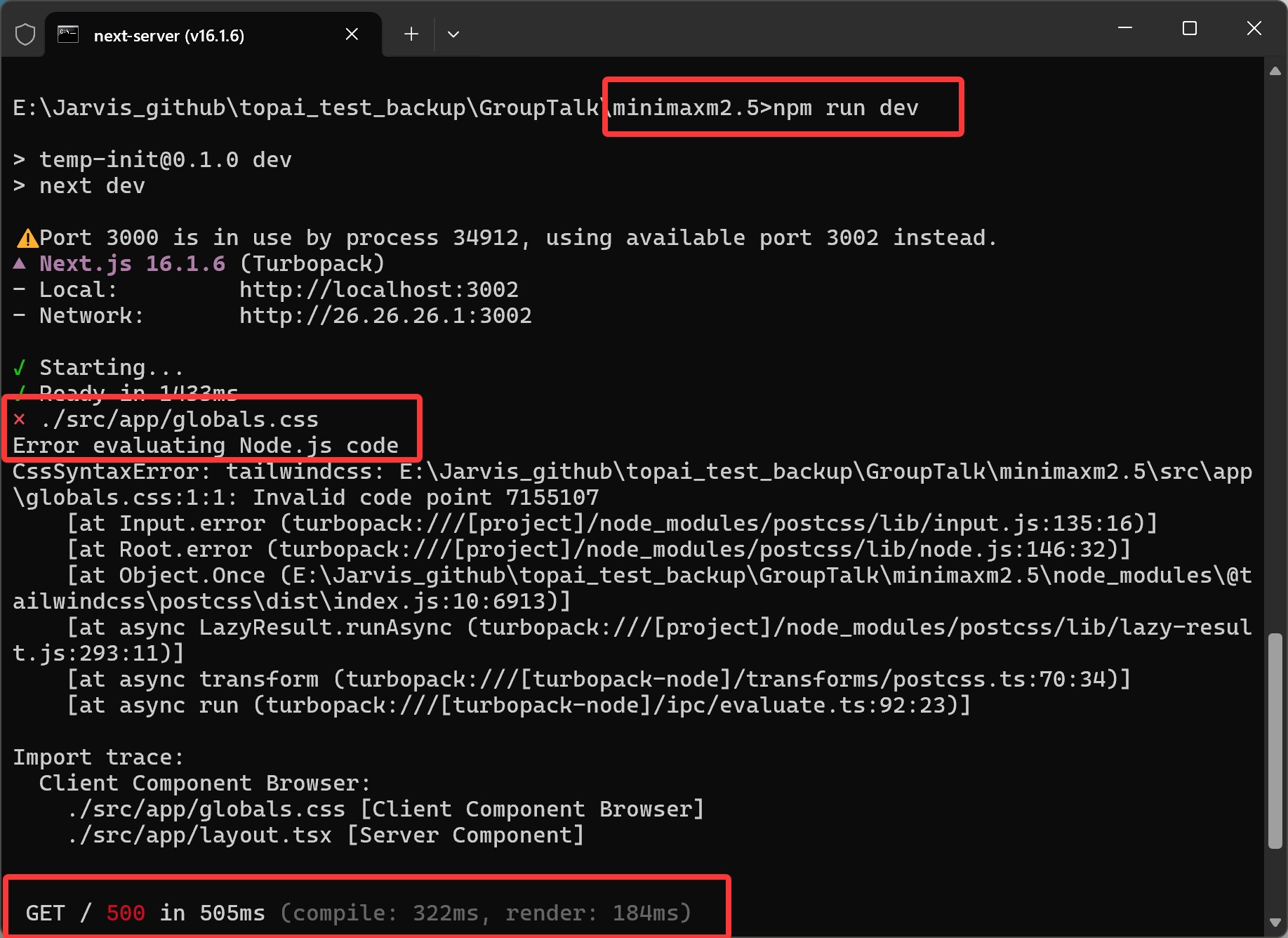 如果 MiniMax 能记住这句话,就不会开发完,访问首页就报错了。