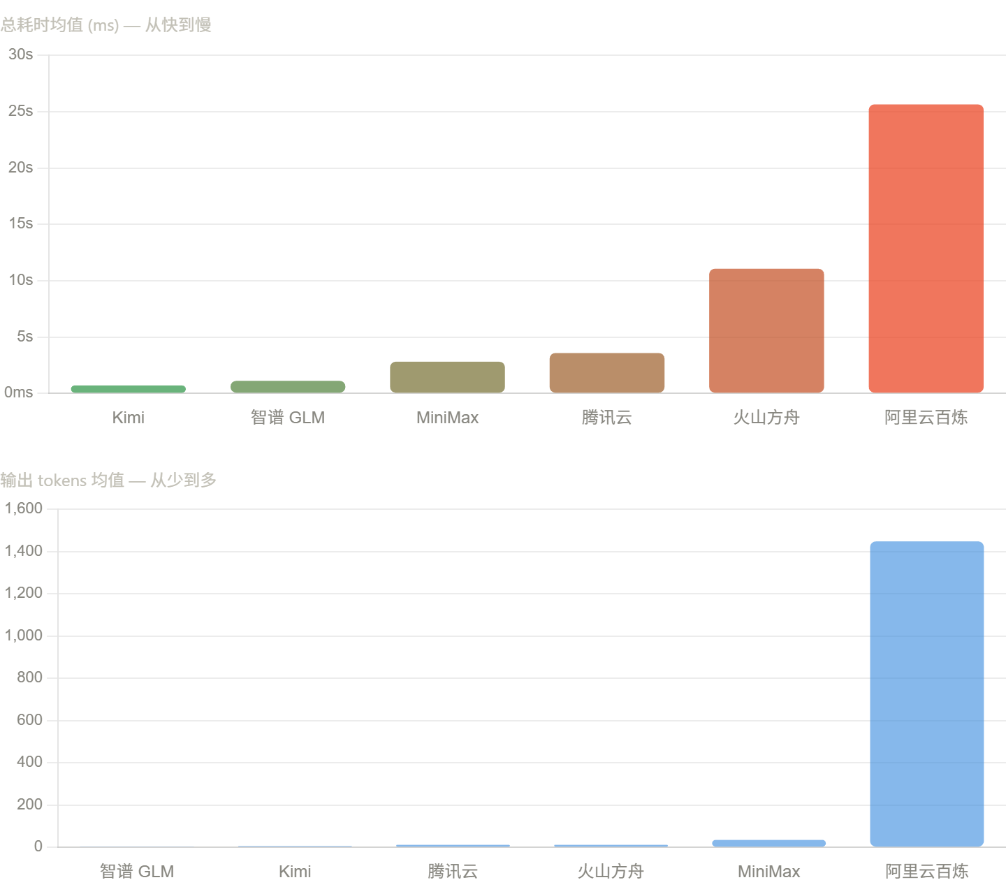 从这个图中可以看到,最快的是:Kimi,火山,智谱。最省的是火山,Kimi,智谱。