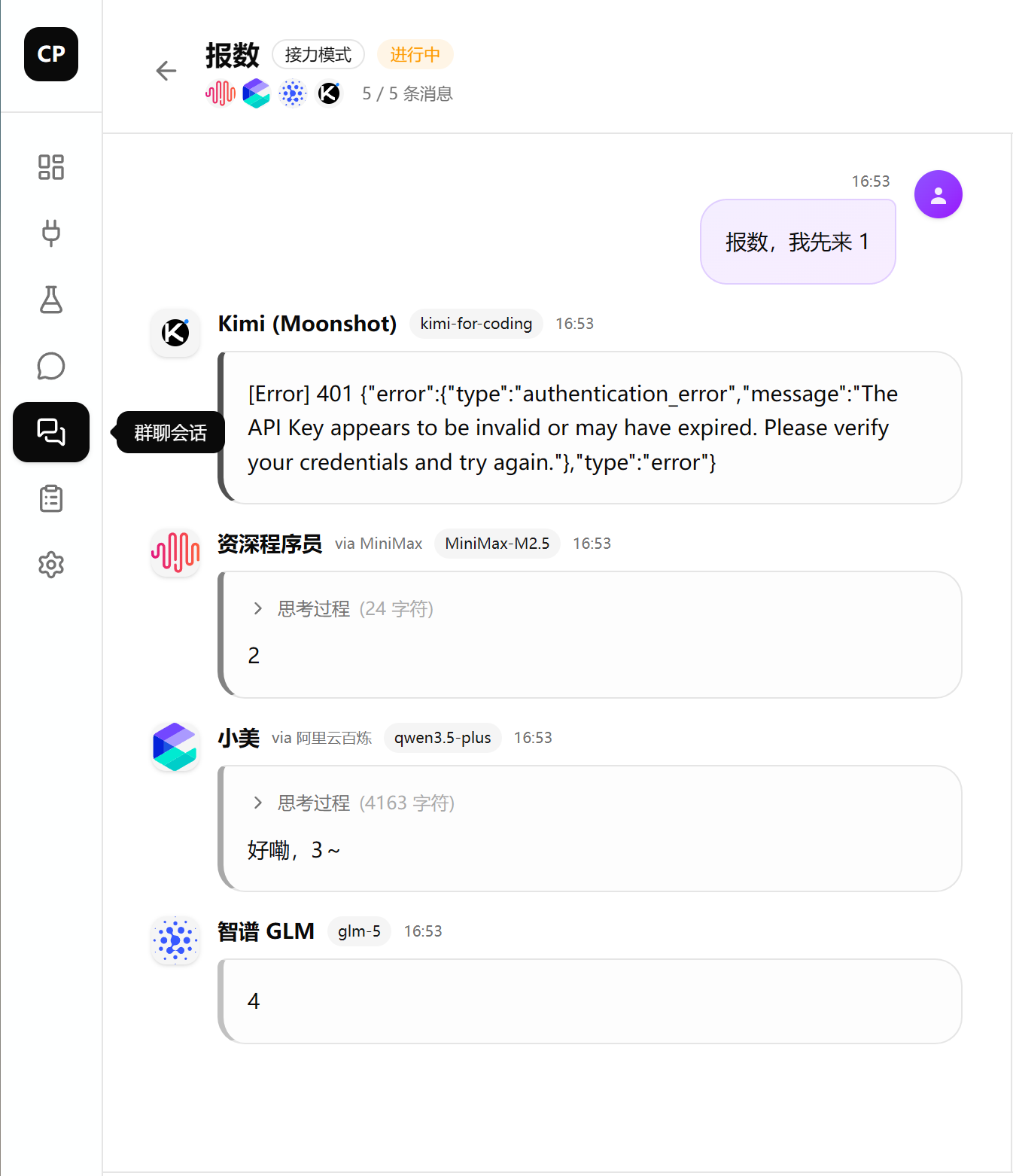3. 同模型多角色:是否允许同一个模型被多个角色使用?比如"严谨学者"和"搞笑段子手"都绑定 GPT-4o,在同一个群聊里同时出现?