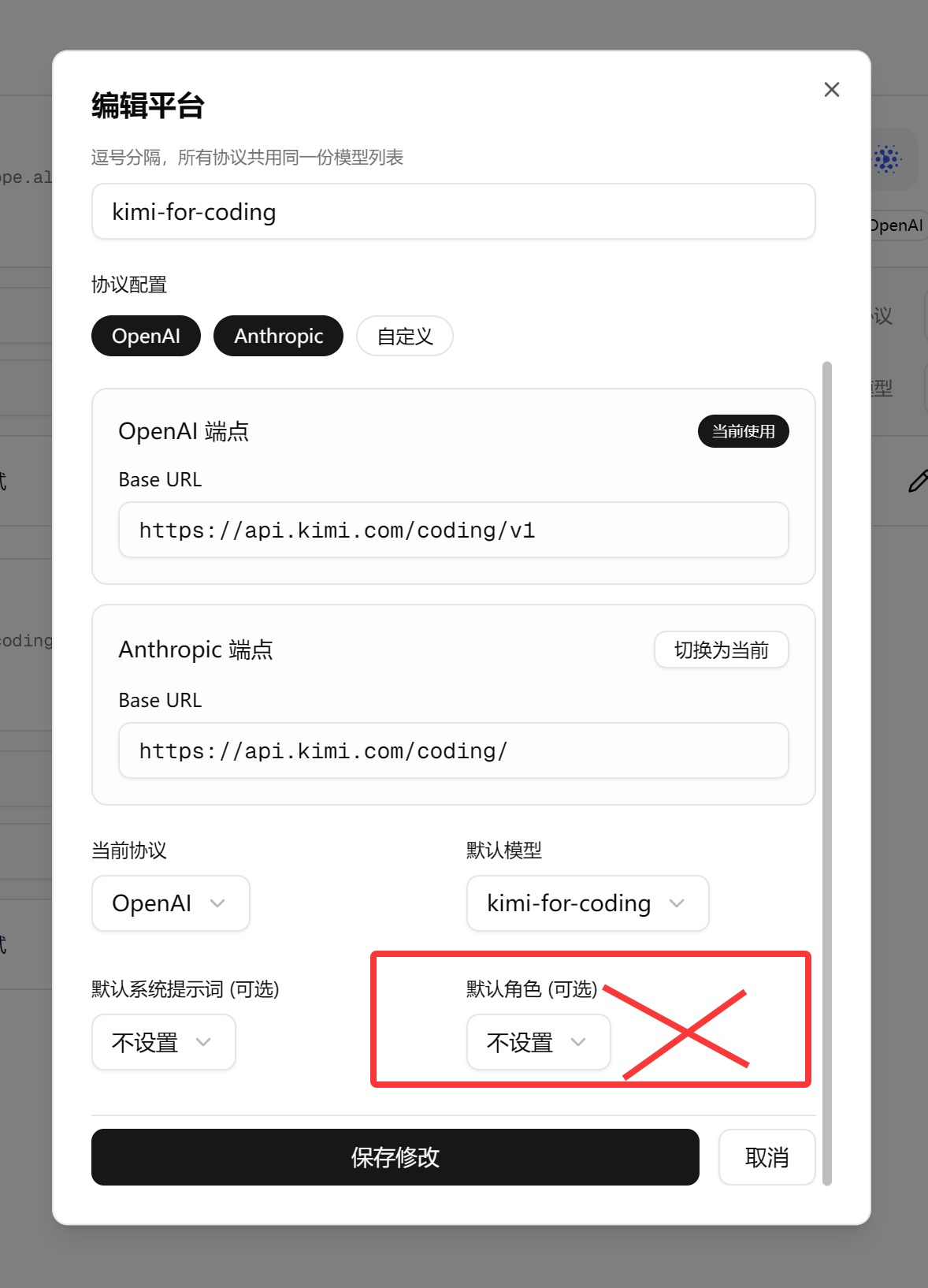 我希望换另外一种设置:**角色里面选模型**,然后群聊开始的时候,我可以直接选平台,也可以直接选角色。角色的管理还是在系统设置的"角色管理"中进行。
