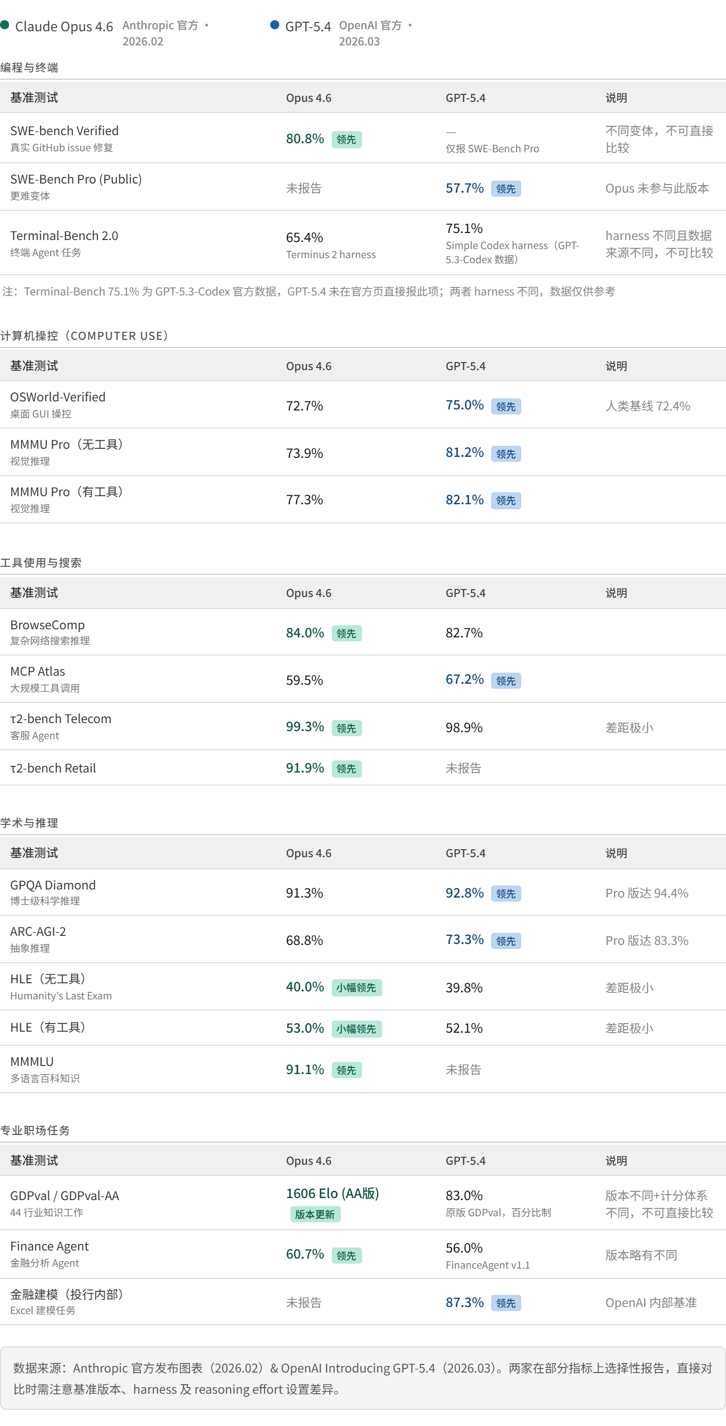 无论内网外网,都有人觉得 GPT5.4 要比 Opus4.6 强,当然也有人觉得 Opus4.6 明显要比 GPT5.4 强!