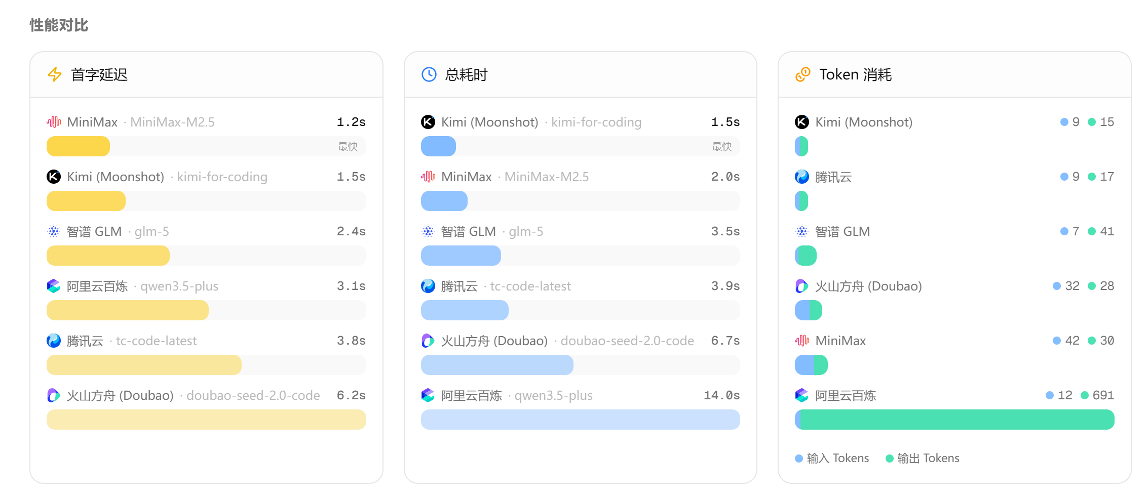 可以一键批量测试不同的平台的速度、tokens 消耗、回答内容等。