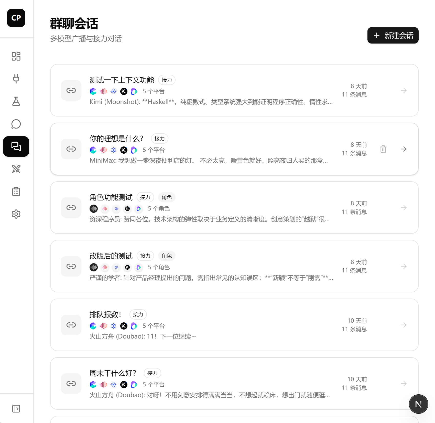 2. 群聊中混合选择:是否允许同一个群聊里既选了几个"裸平台",又选了几个"角色"?比如群里有"角色A(用 GPT-4o)"+"角色B(用 Claude)"+"裸的 Gemini 平台"?
