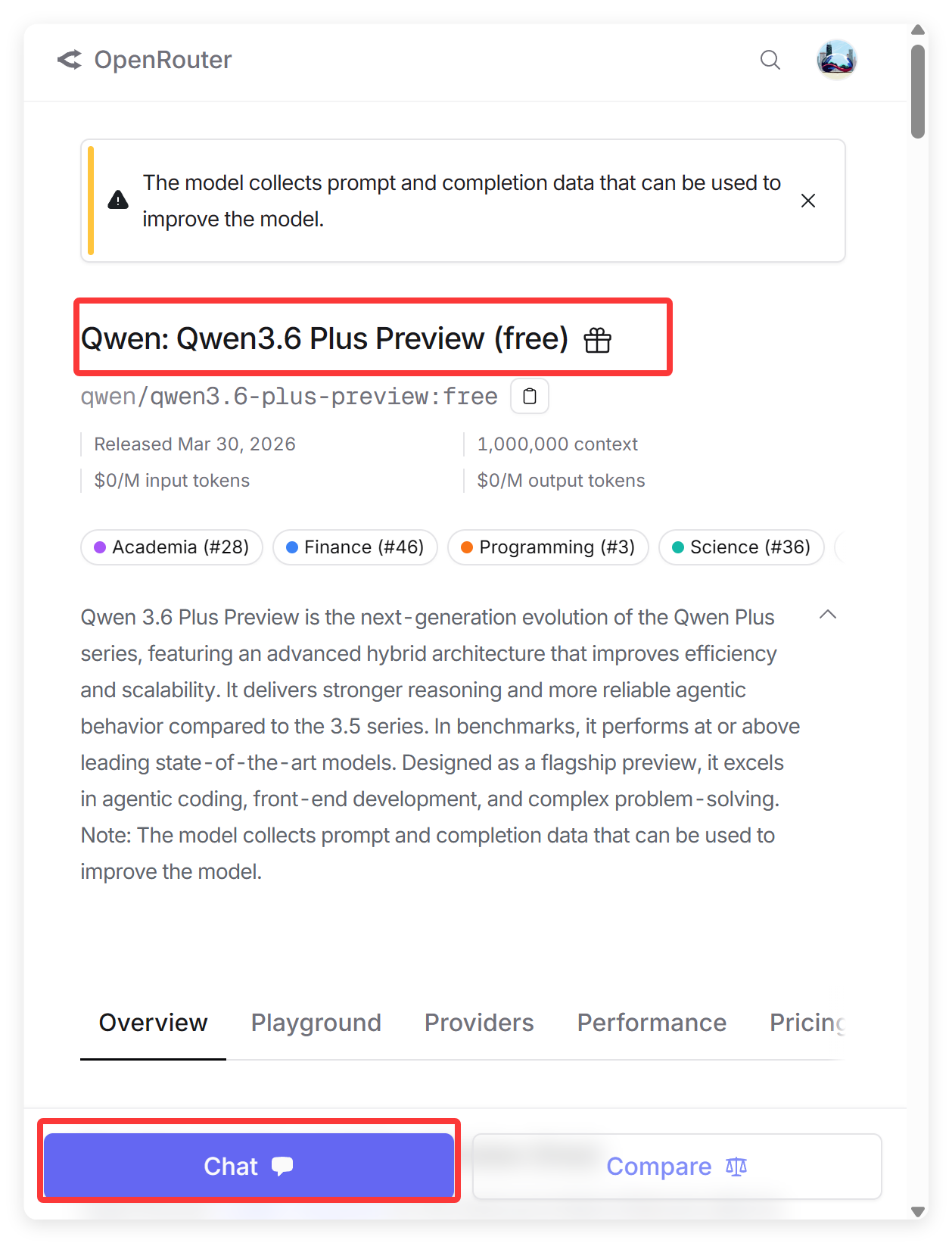 OpenRouter 是一个 AI 模型集合平台,可以在上面调用几乎所有的国内外顶级 AI 模型。很多新模型都会在这个平台提供免费内测。