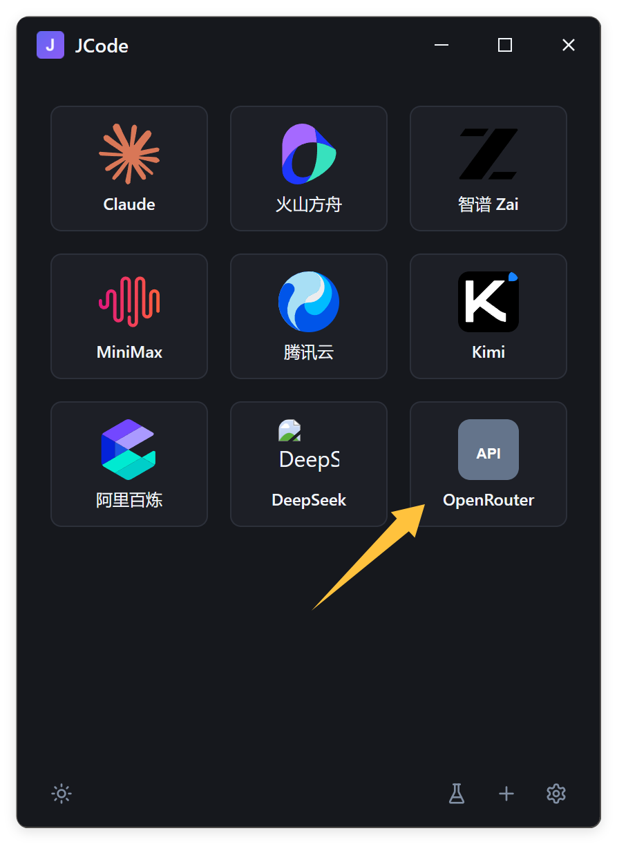 首次使用,需要点击右下角的加号添加一下 OpenRouter 的配置。