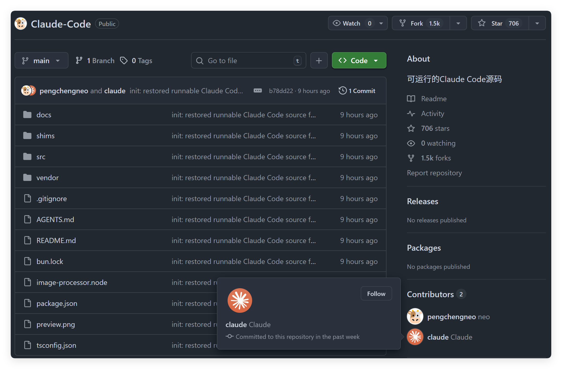 这里还有一个很好玩的,这个项目的其中一个贡献者叫 Claude!!!