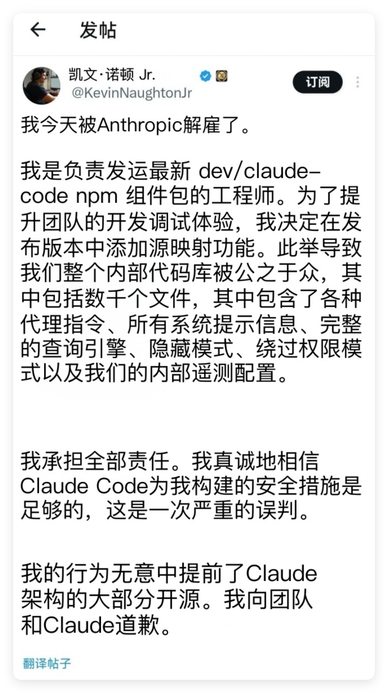 Claude Code 这么牛逼的 AI 公司,居然会犯这么低级的错误,“世界就是一个草台子”这句话的分量还在增加!